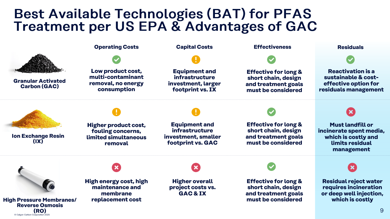 Proven track record, as GAC is already a trusted solution for a wide range of drinking water contaminants.