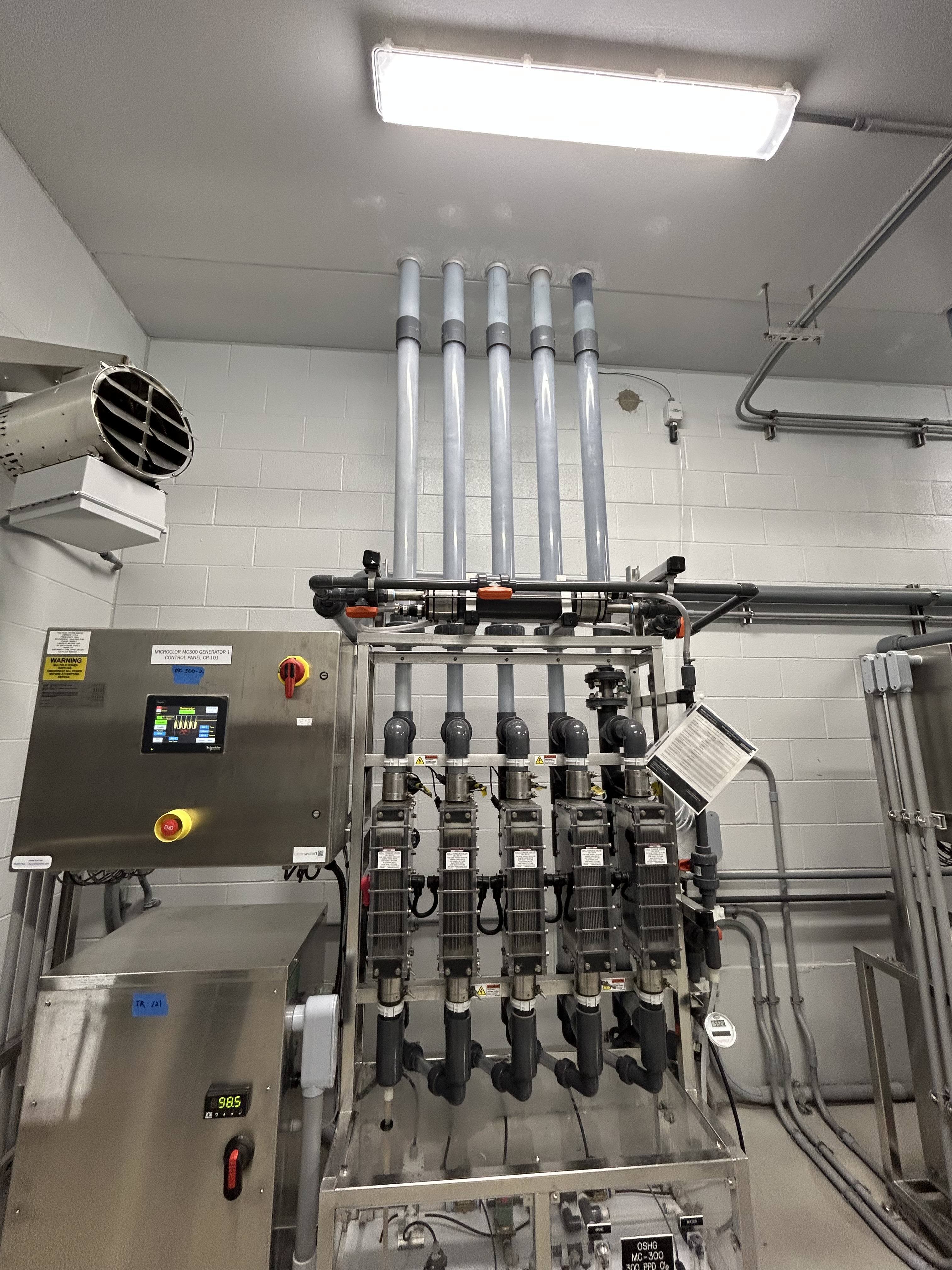 Eclipse Engineering designed a 12MGD greenfield facility to treat water from Cave Run Lake. The facility included flocculation basins, UF/MF membranes, GAC treatment, chemical feed systems. The facility generates their own .8% sodium hypochlorite with (2) 300 PPD MicroClor Systems.